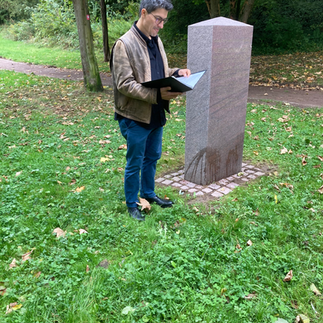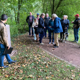 Am Samstag ging es um 15.00 Uhr zur Führung auf den Denklehrpfad III mit Thomas Hof. Über 30 Teilnehmer ließen sich von ihm überraschen, wie er zu den jeweiligen Texten seinen eigenen Ideen und Assoziationen folgte, teilweise auch mit Gesang.